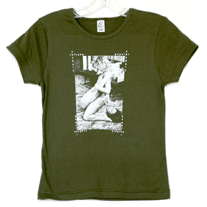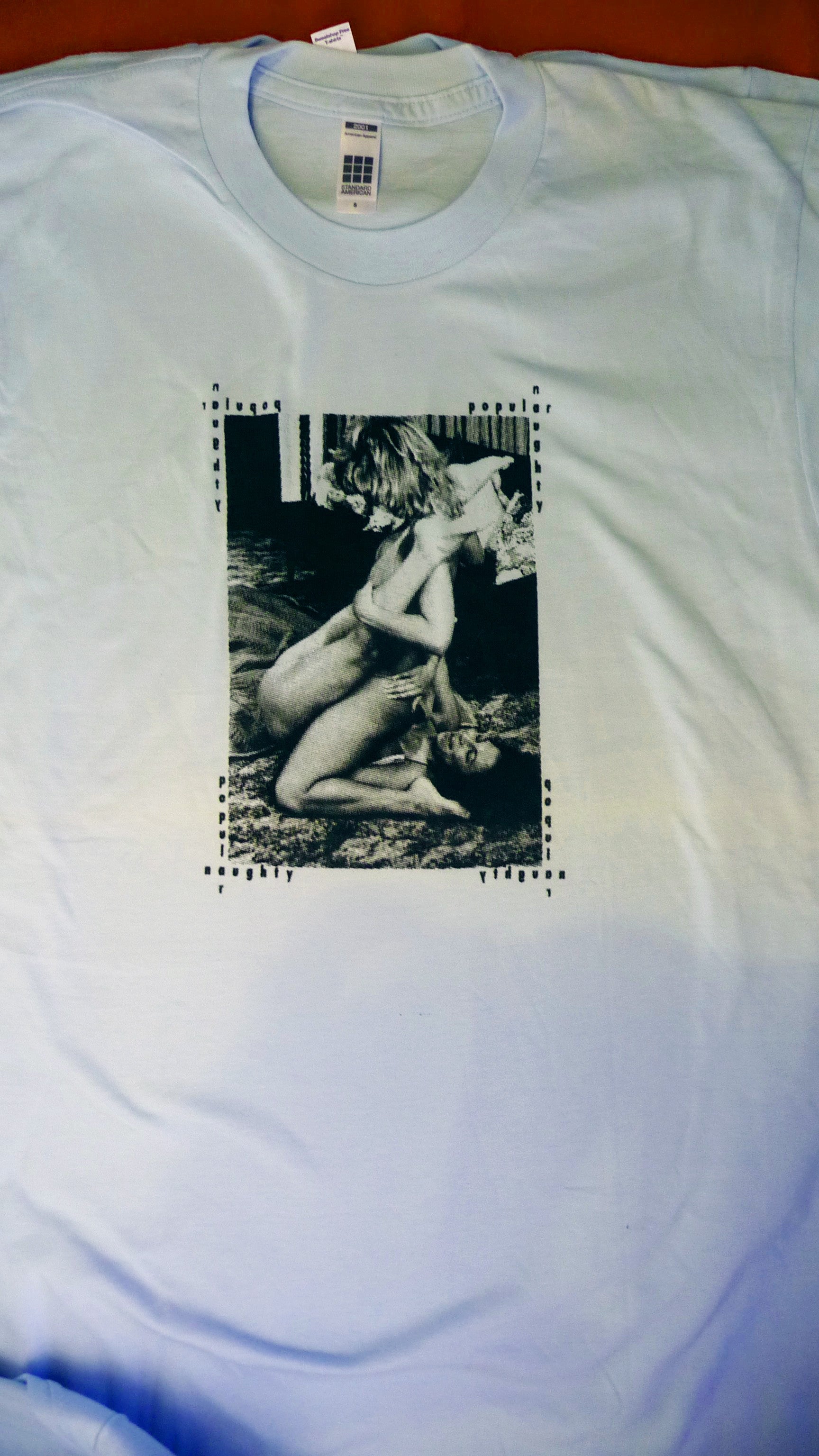 Well maybe a little judgement... the whole thing is sooooo weird. But that is what makes it a cool design. We were at a clothing trade show a few years back and the head clothing designer for CBGB's, the legendary punk venue, said, "That is the RADDEST SHIRT EVER!"